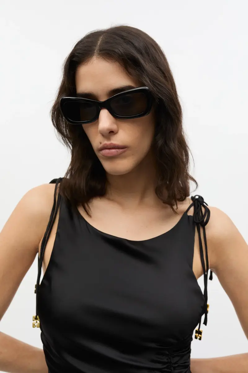 GANNI x Ace & Tate returns with three limited-edition sunglasses silhouettes designed to frame every side of your personality. These sunglasses feature a black acetate frame in a recta