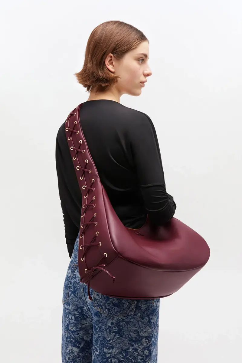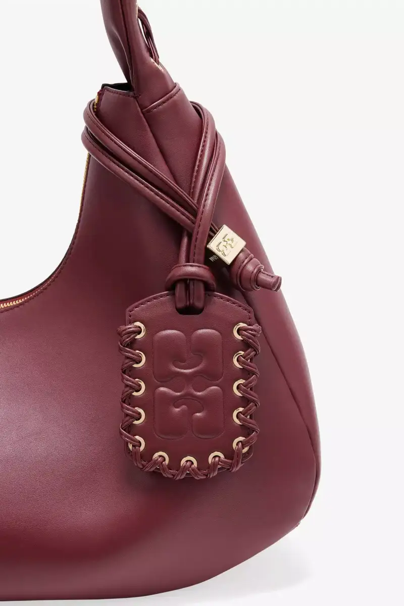 Burgundy Medium Laces Hobo Bag