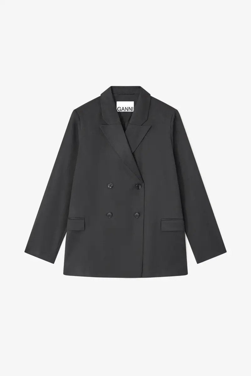 This blazer features a collar, notched lapels, double breasted button-front closure and 2 welt pockets.