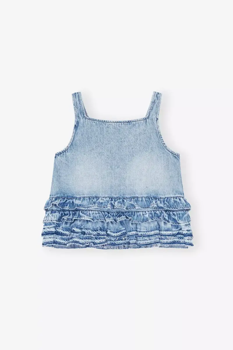 Light Blue Denim Frill Top