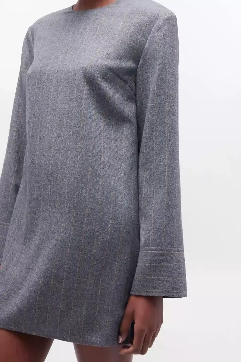 Grey Stripe Circle Collar Dress