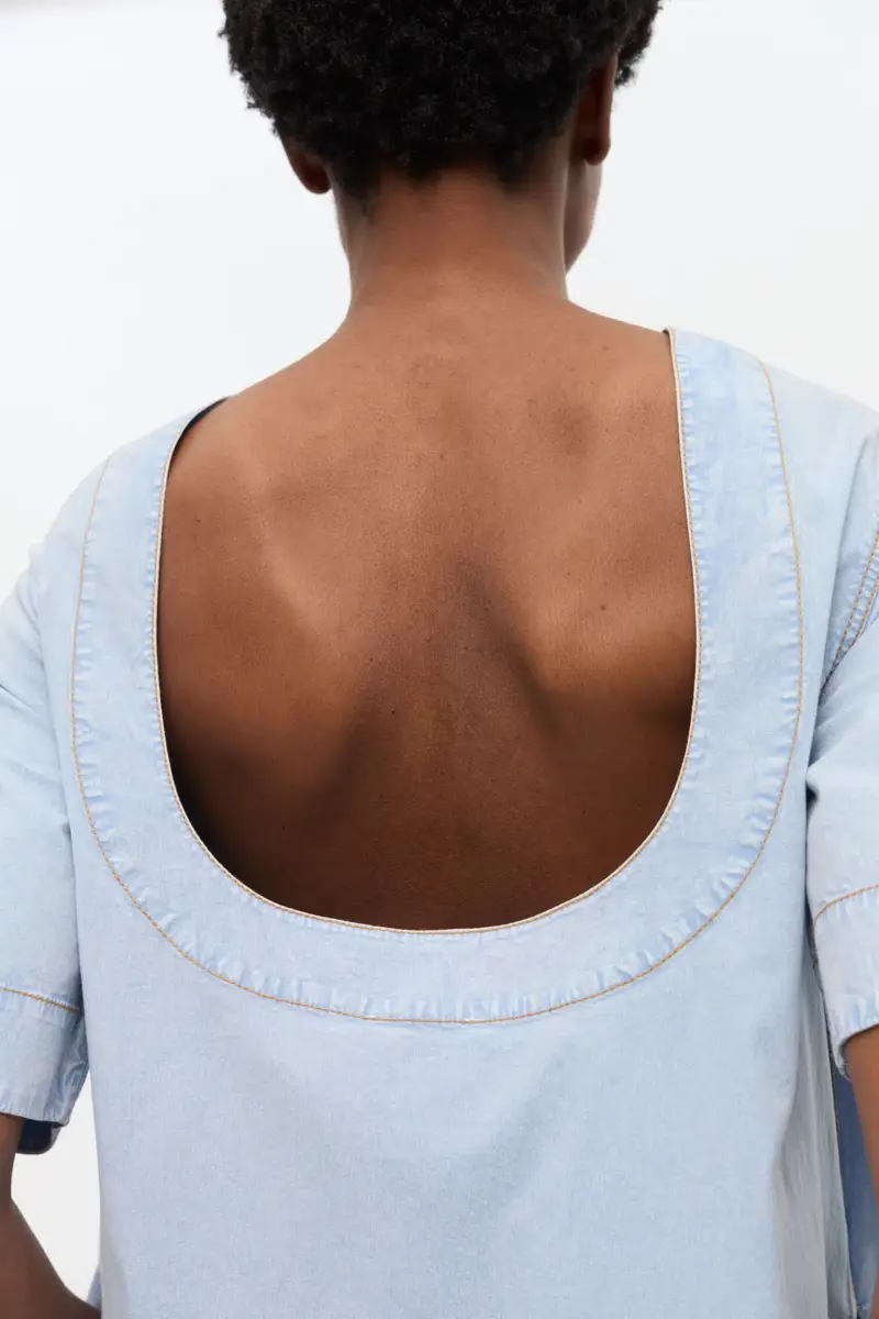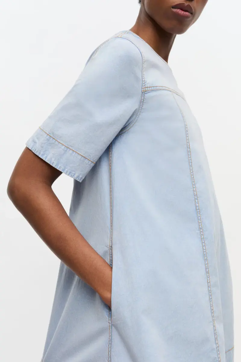 Light Blue A-line Mini Denim Dress