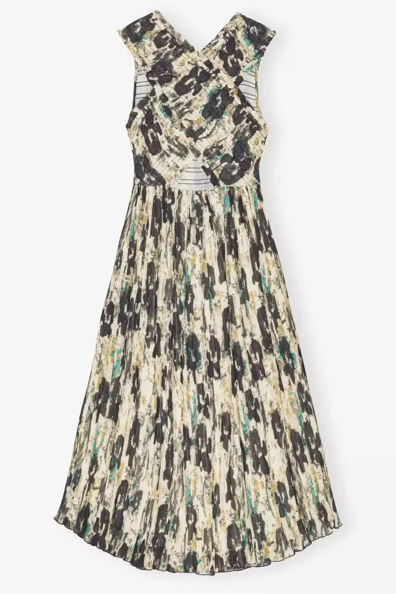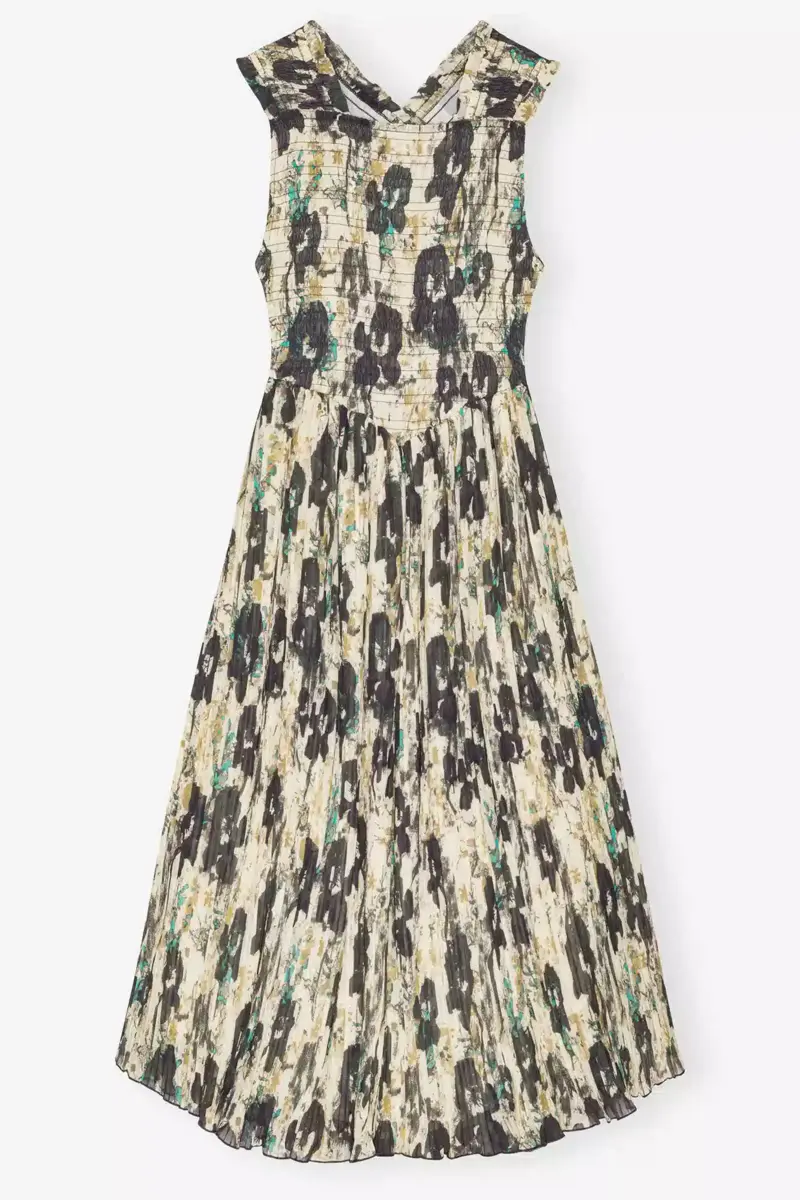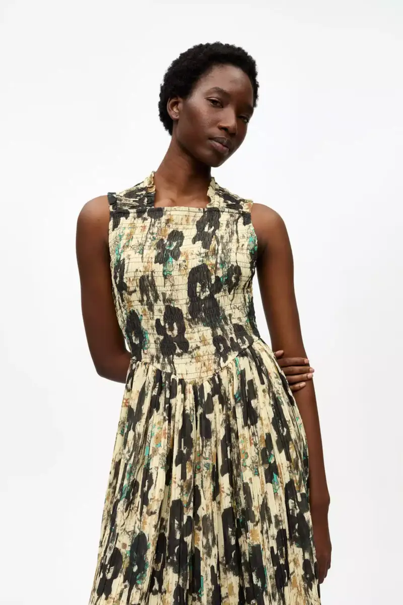 This Printed Pleats Smock Midi Straps Dress features a straight neckline with smock straps, cut-out detail at the back and a smock bodice.