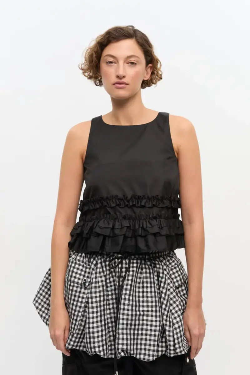Black Duchesse Nylon Frill Top