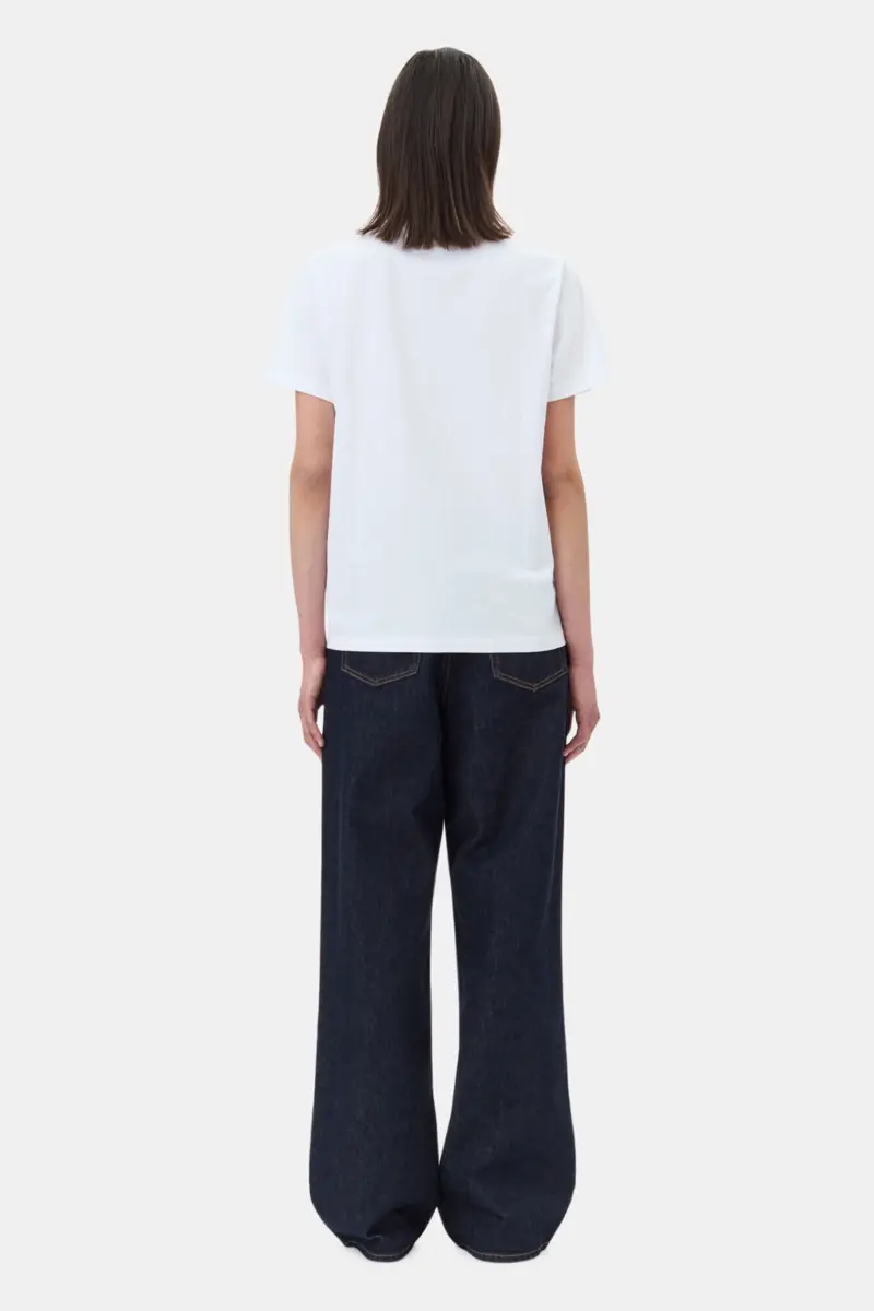 This White Basic Jersey Leopard Relaxed T-shirt features a crew neckline, short sleeves and a graphic GANNI print.