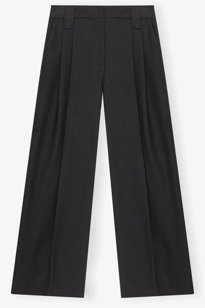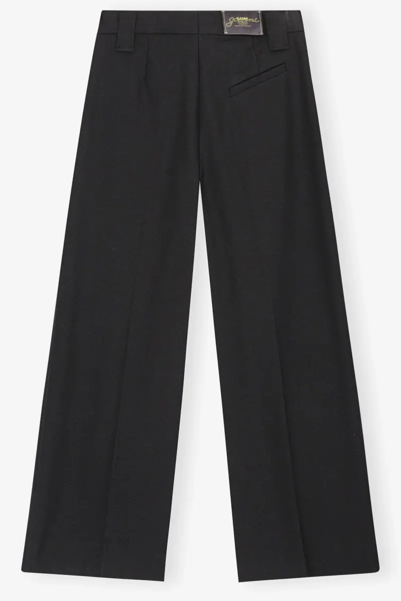 These trousers feature belt loops, zip closure, side pockets, a sewn-on GANNI logo patch and a back pocket.