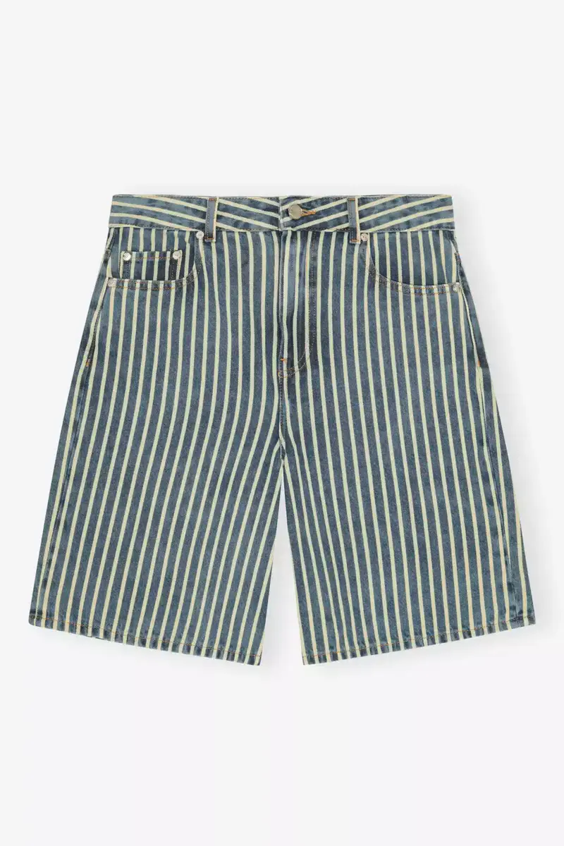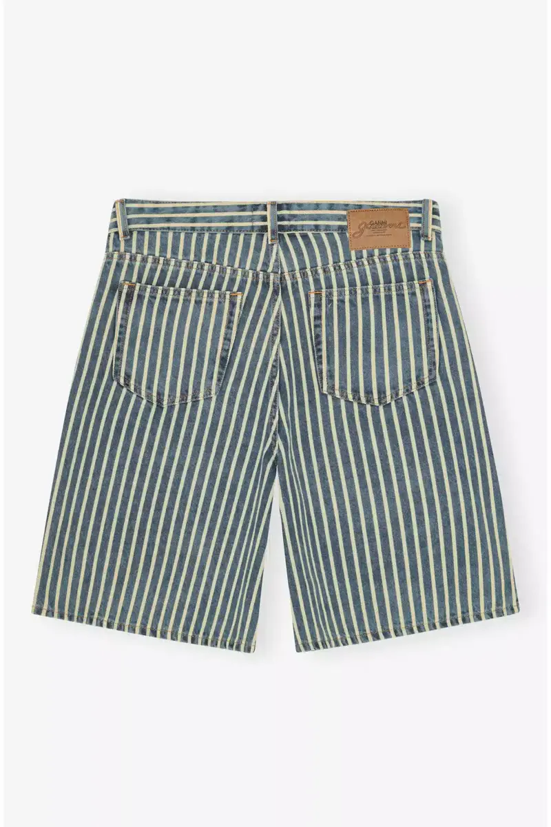 These shorts feature a vertical striped pattern, belt loops, a button closure and a classic five pocket style.