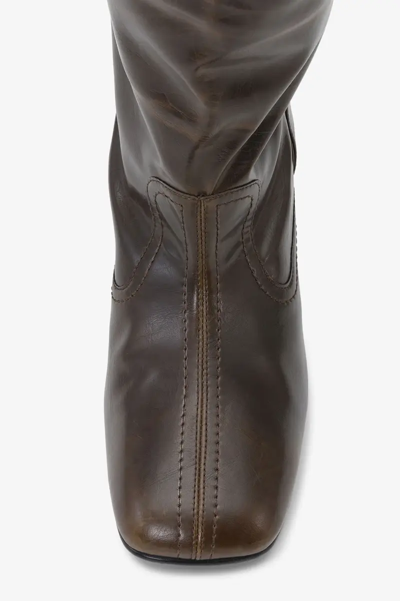 These boots feature a slouchy silhouette with a Butterfly logo buckle and strap detail and a GANNI Butterfly logo mini heel with a chrome finish.